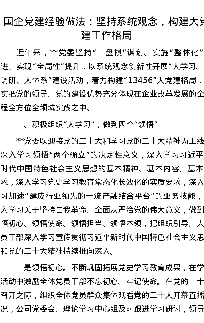 国企党建经验做法:坚持系统观念,构建大党建工作格局