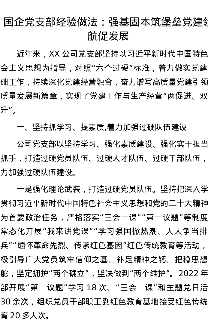 国企党支部经验做法:强基固本筑堡垒 党建领航促发展