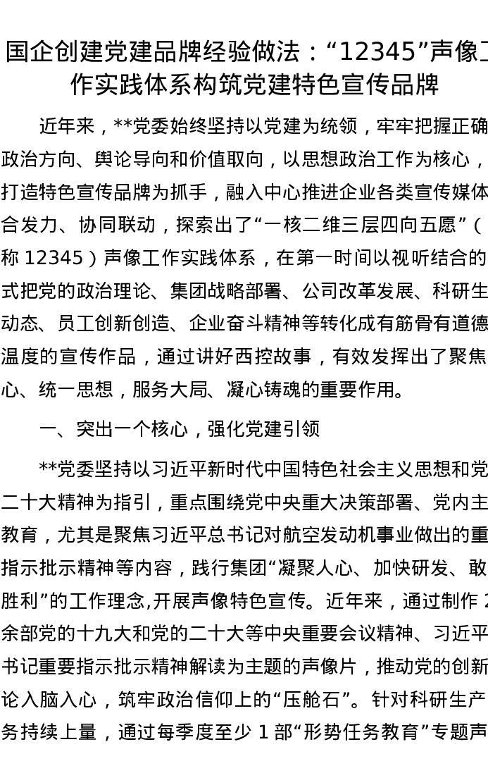国企创建党建品牌经验做法:“12345”声像工作实践体系 构筑党建特色宣传品牌
