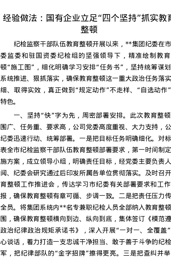 经验做法:国有企业立足“四个坚持”抓实教育整顿