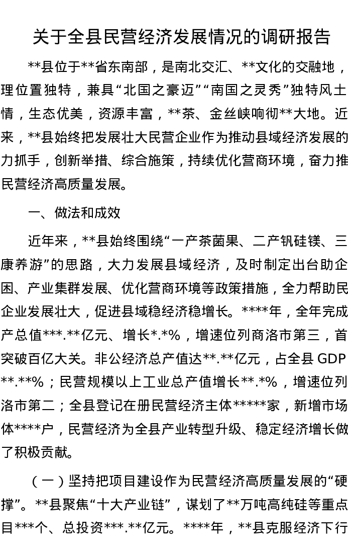 关于全县民营经济发展情况的调研报告