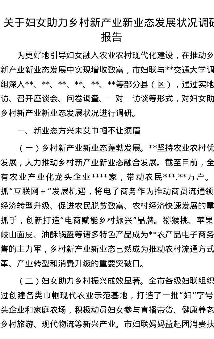 关于妇女助力乡村新产业新业态发展状况调研报告