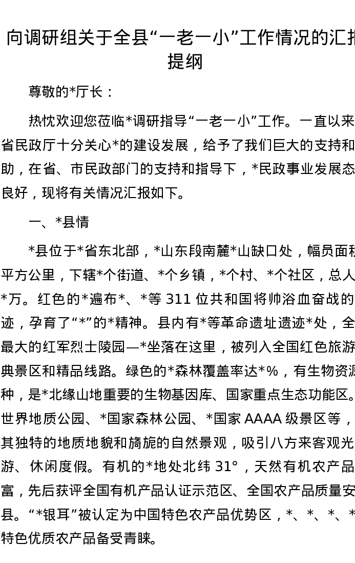 向调研组关于全县“一老一小”工作情况的汇报提纲