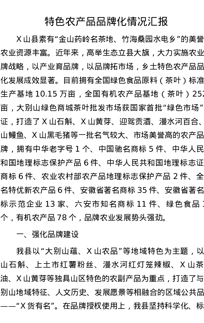 笔友分享-特色农产品品牌化情况汇报