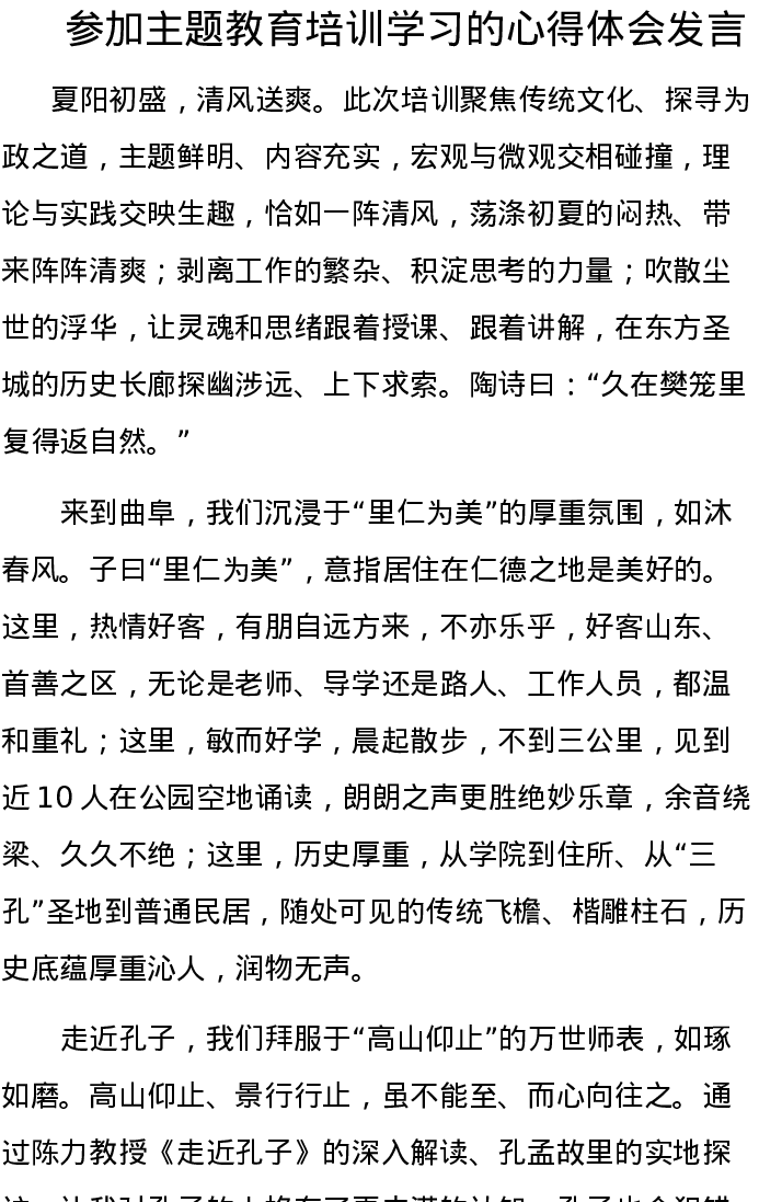 参加主题教育培训学习的心得体会发言(特色社会主义思想)