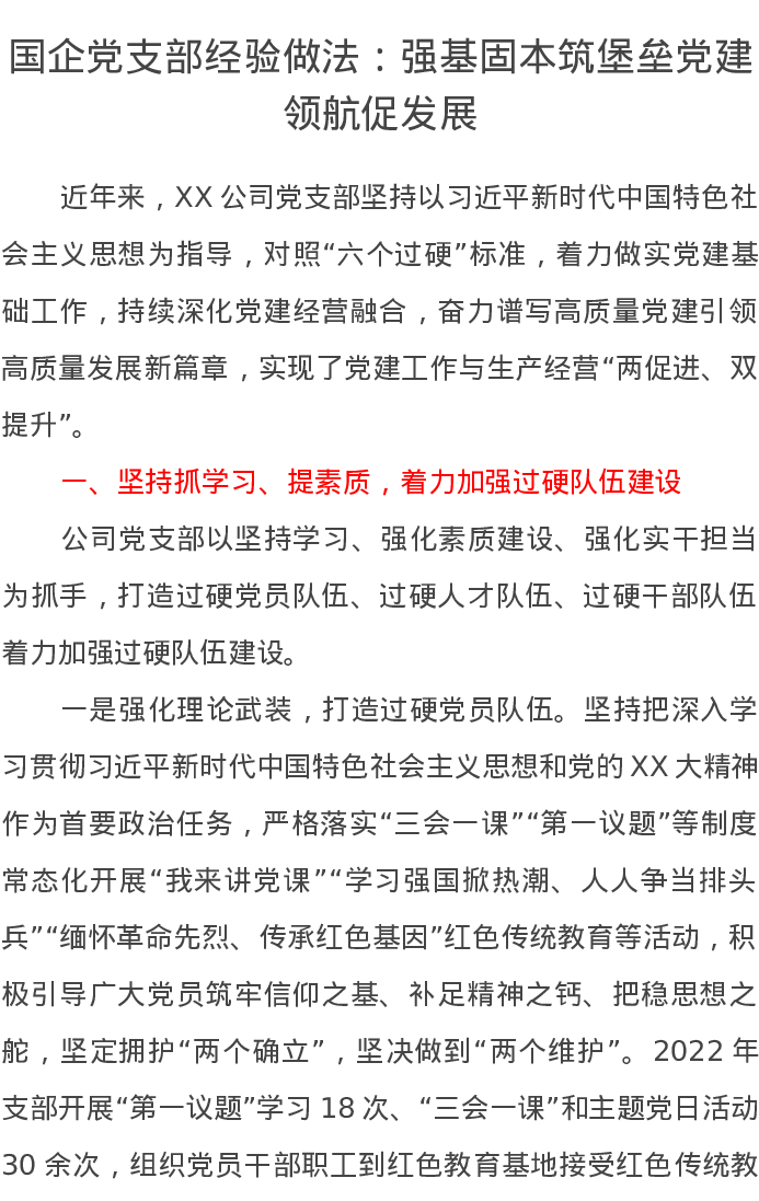 国企党支部经验做法:强基固本筑堡垒党建领航促发展