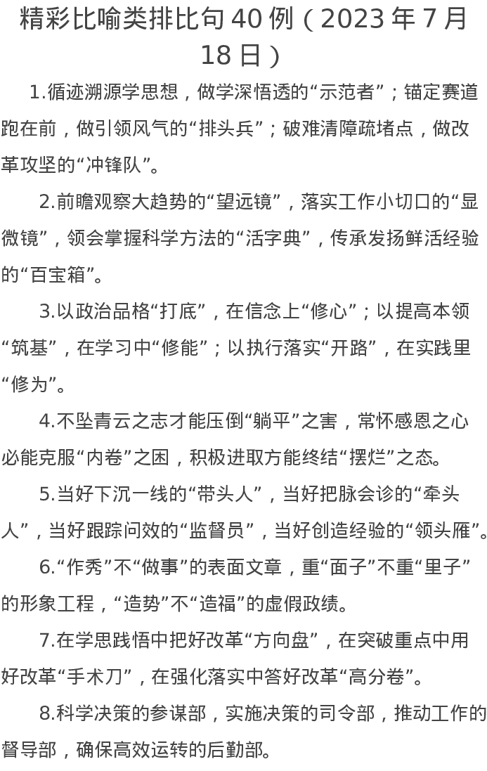 精彩比喻类排比句40例(2023年7月18日)