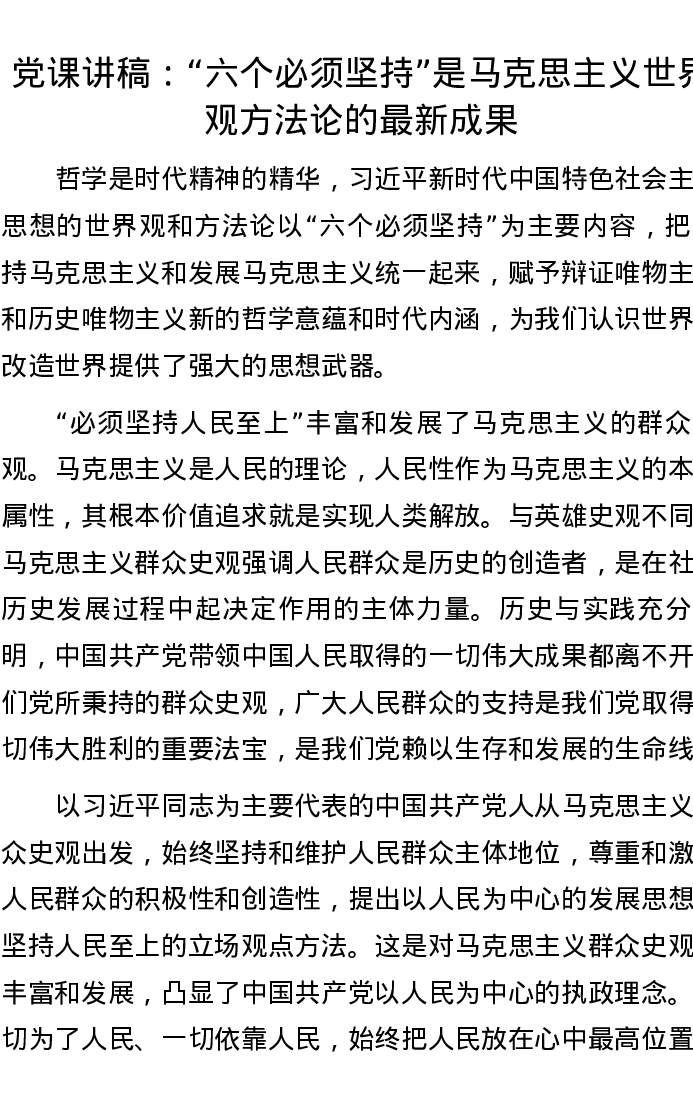 党课讲稿:“六个必须坚持”是马克思主义世界观方法论的最新成果