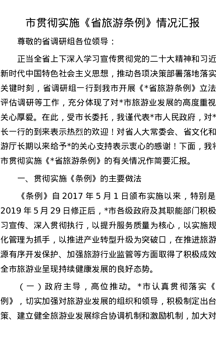 市贯彻实施《省旅游条例》情况汇报