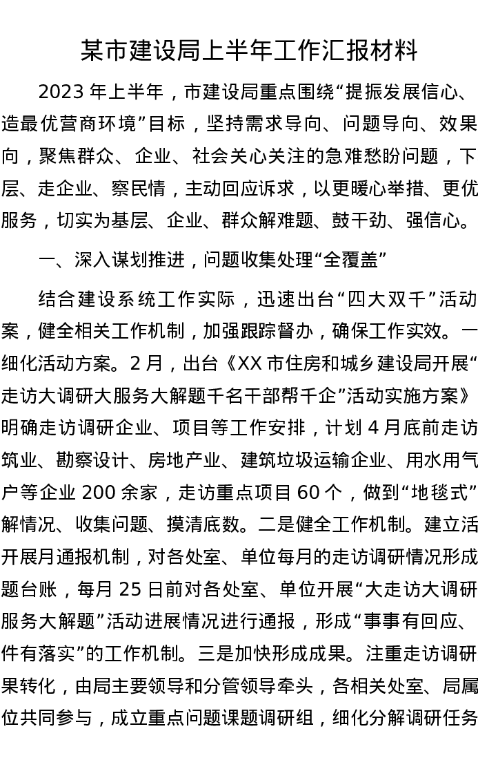 某市建设局上半年工作汇报材料