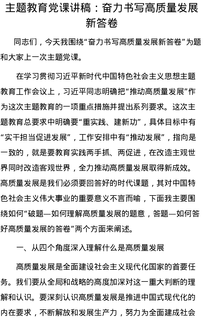 主题教育党课讲稿:奋力书写高质量发展新答卷(特色社会主义思想)