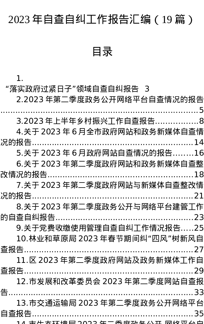 汇编:2023年自查自纠工作报告19篇