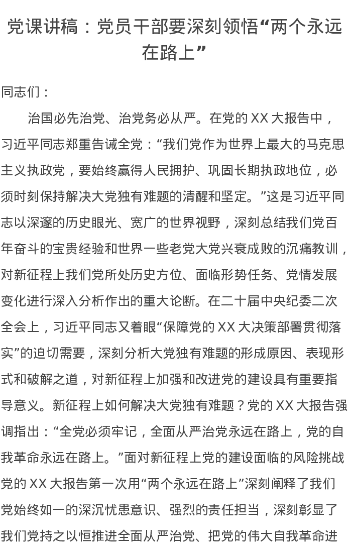 党课讲稿:党员干部要深刻领悟“两个永远在路上”