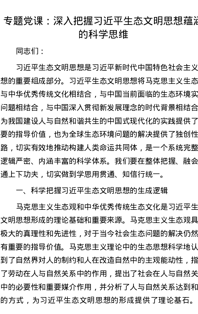 专题党课:深入把握习近平生态文明思想蕴涵的科学思维