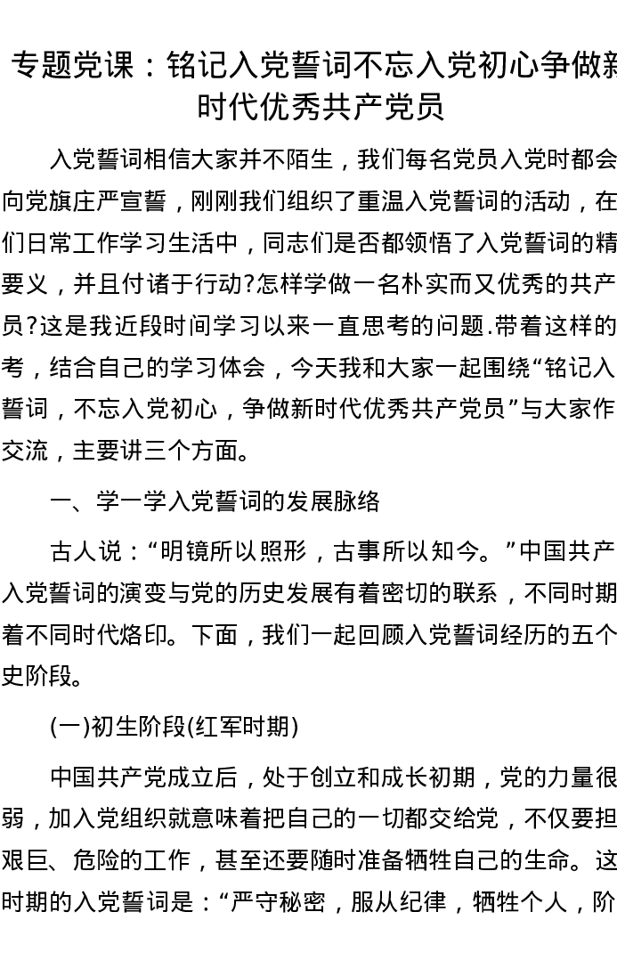专题党课:铭记入党誓词不忘入党初心争做新时代优秀共产党员