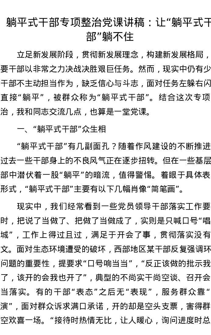 躺平式干部专项整治党课讲稿:让“躺平式干部”躺不住