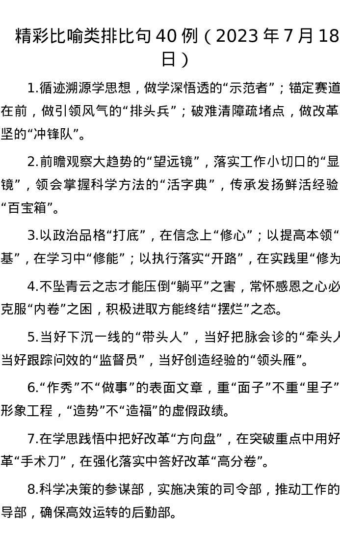 精彩比喻类排比句40例(2023年7月18日)