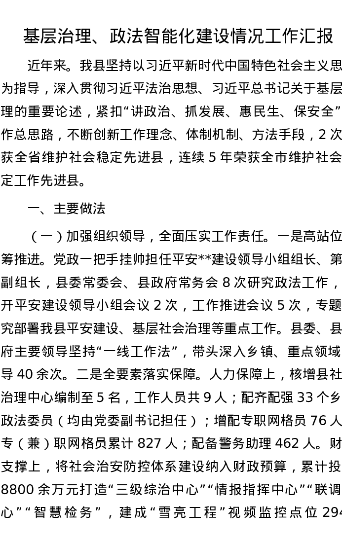 基层治理、政法智能化建设情况工作汇报
