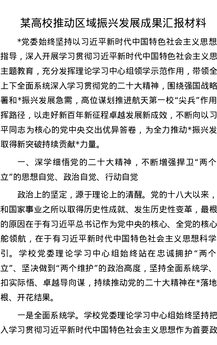 某高校推动区域振兴发展成果汇报材料