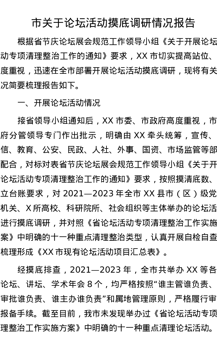 市关于论坛活动摸底调研情况报告