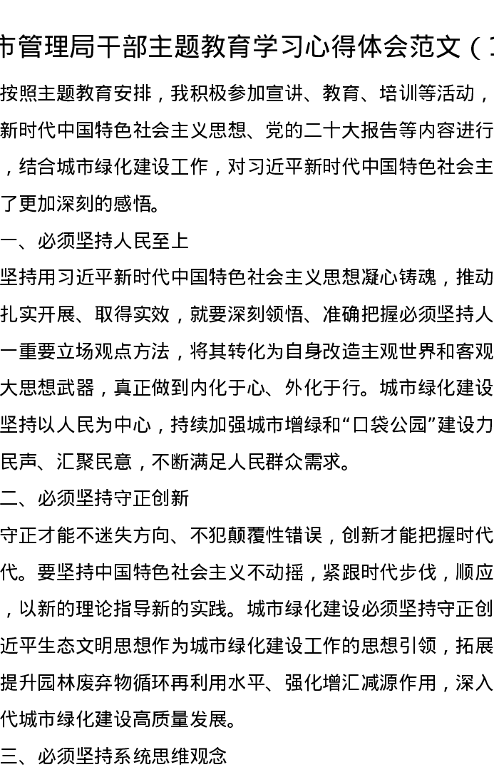 汇编:城市管理局干部主题教育学习心得体会研讨发言8篇(特色社会主义思想)