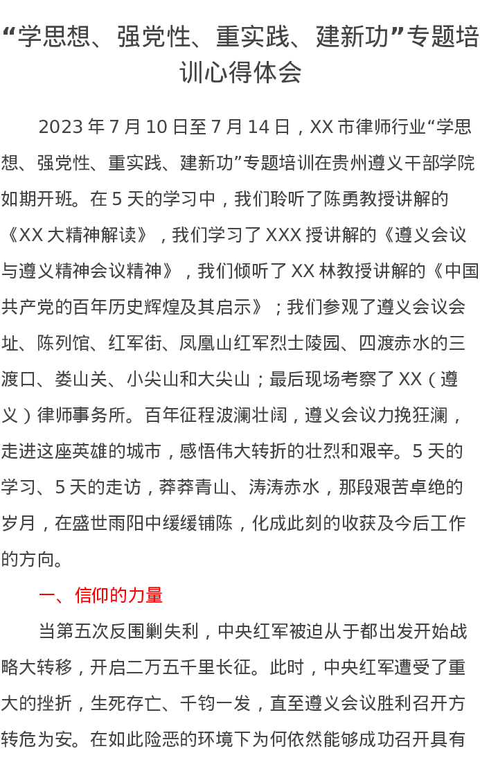 “学思想、强党性、重实践、建新功”专题培训心得体会