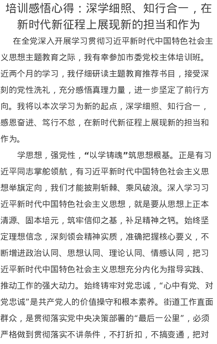培训感悟心得:深学细照、知行合一,在新时代新征程上展现新的担当和作为