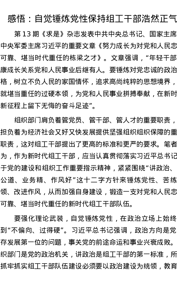 感悟:自觉锤炼党性 保持组工干部浩然正气