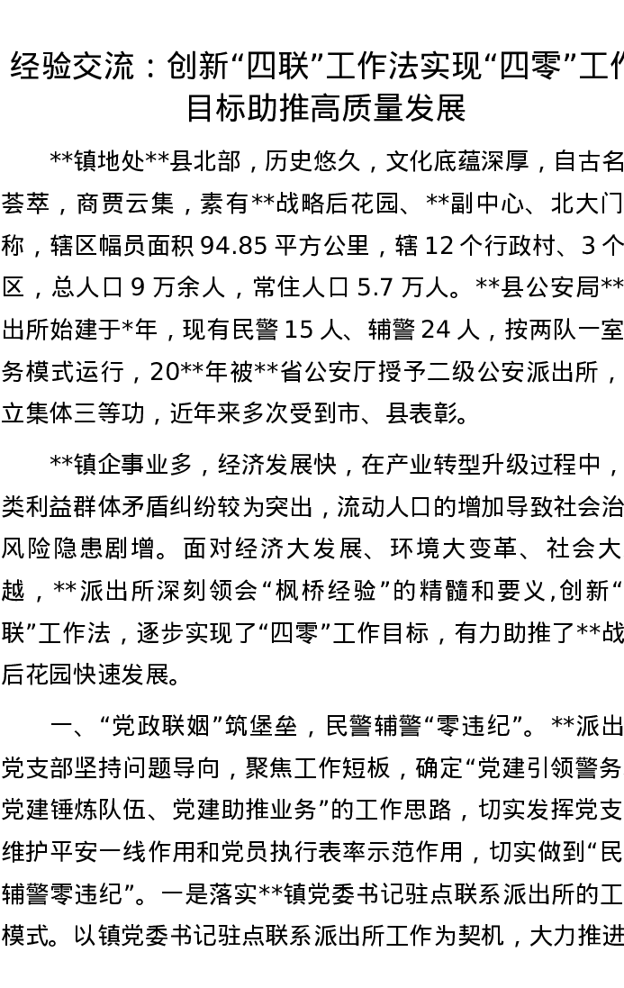 经验交流:创新“四联”工作法 实现“四零”工作目标 助推高质量发展