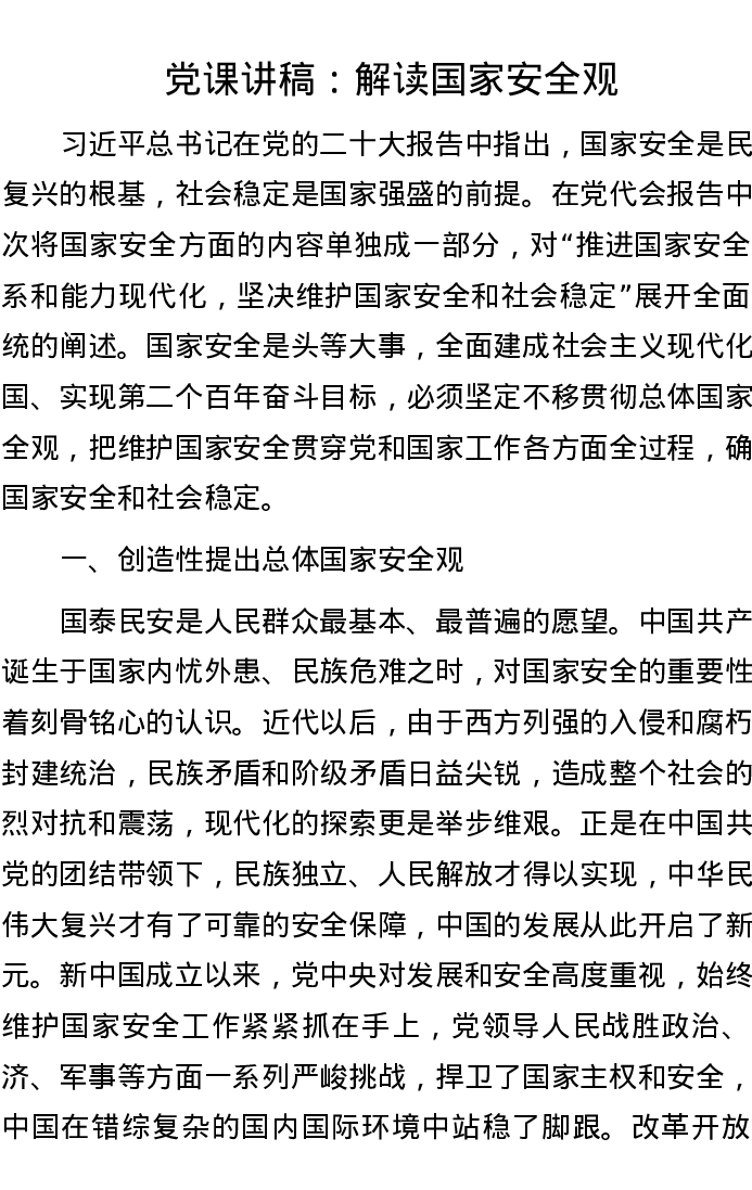 党课讲稿:解读国家安全观