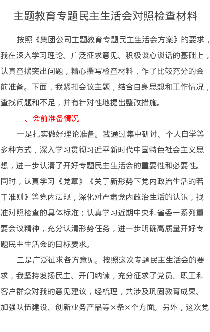 主题教育专题民主生活会对照检查材料(特色社会主义思想) (1)