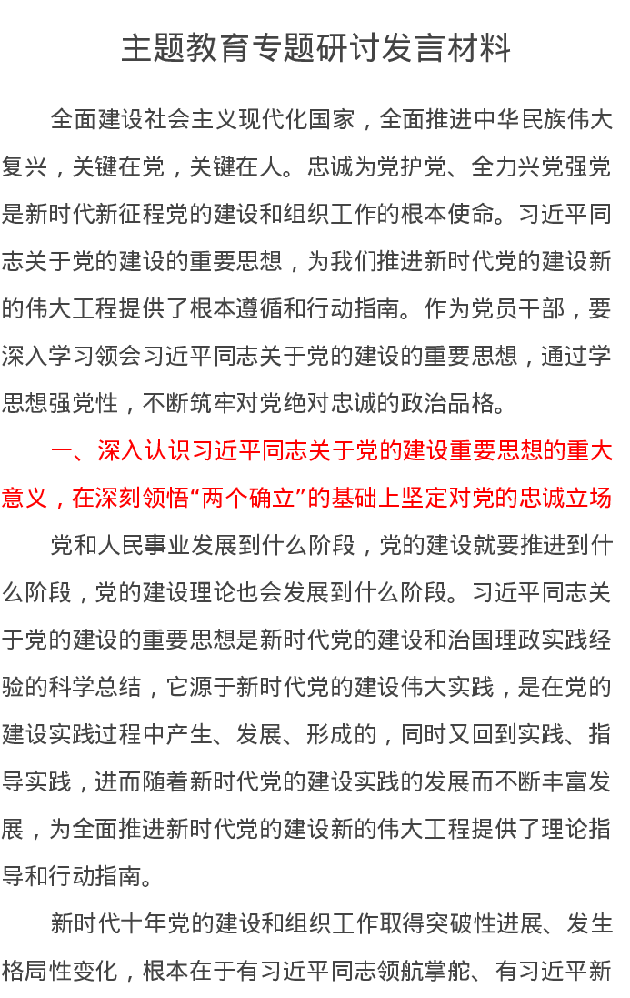 主题教育专题研讨发言材料(特色社会主义思想)