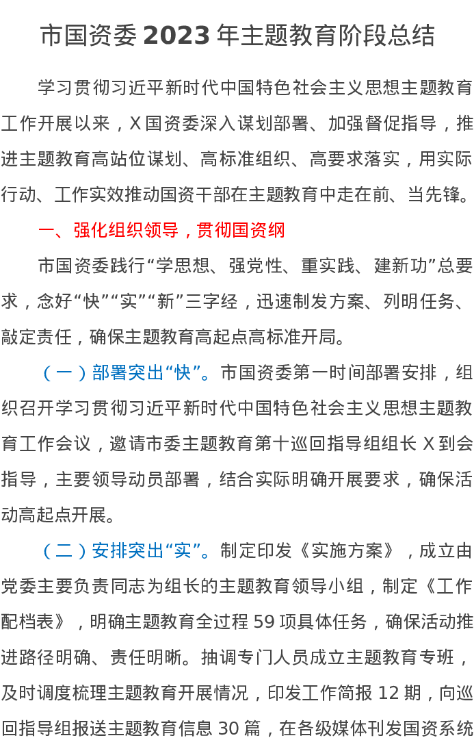 市国资委2023年主题教育阶段总结(特色社会主义思想)