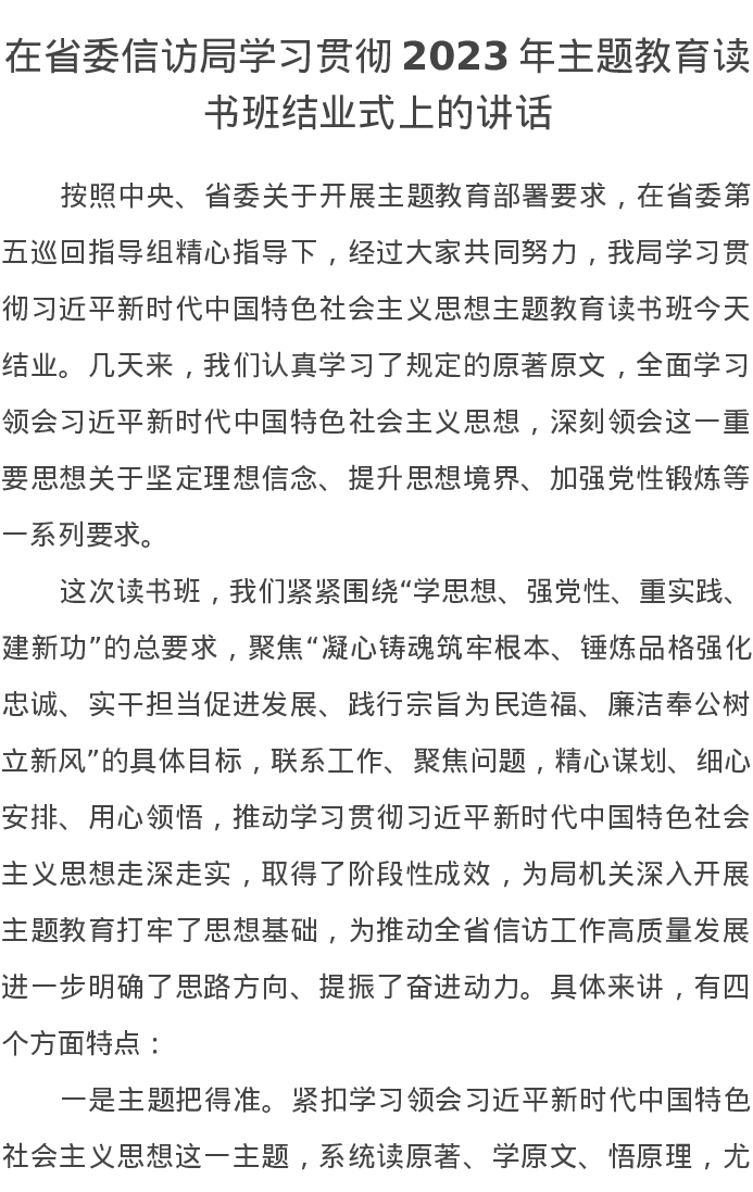 在省委信访局学习贯彻2023年主题教育读书班结业式上的讲话