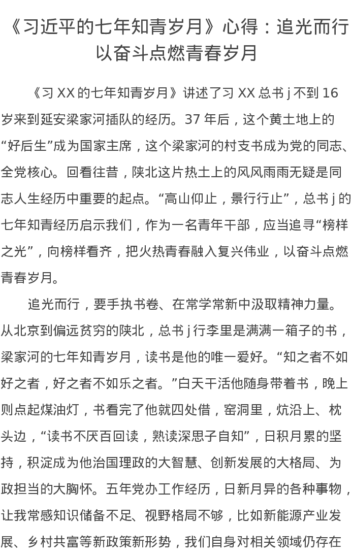 《习近平的七年知青岁月》心得:追光而行以奋斗点燃青春岁月