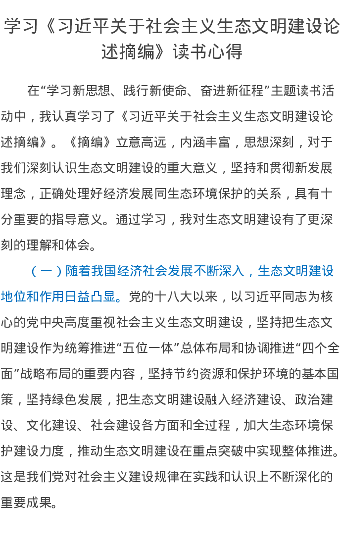 学习《习近平关于社会主义生态文明建设论述摘编》读书心得