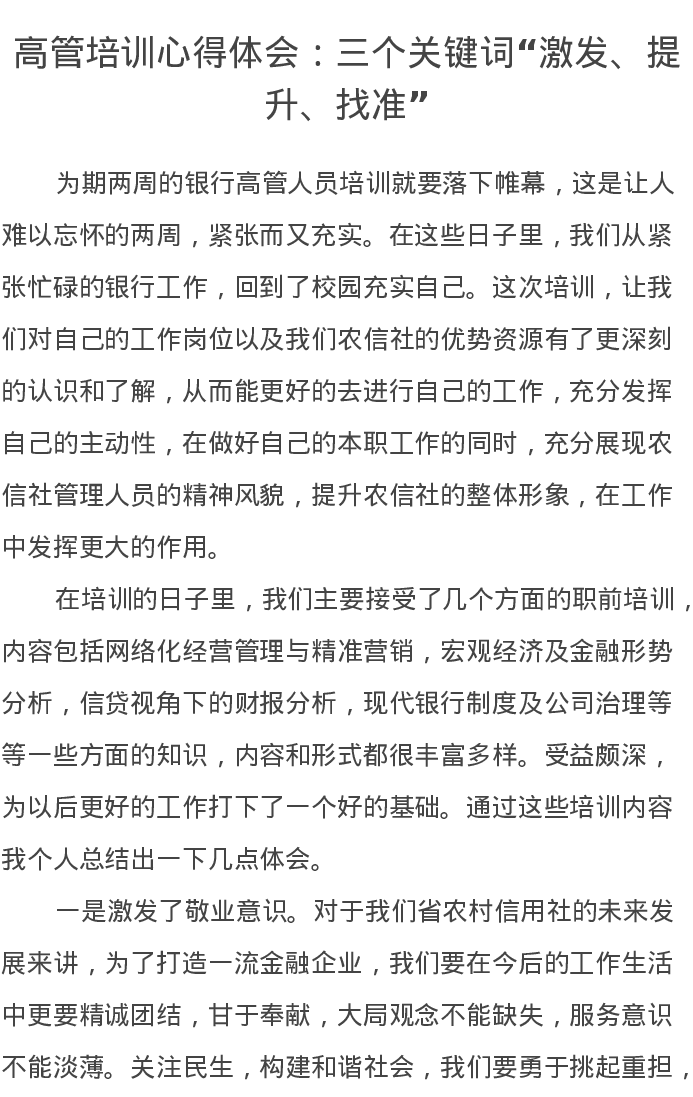 高管培训心得体会:三个关键词“激发、提升、找准”
