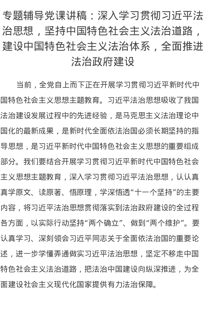 专题辅导党课讲稿:深入学习贯彻习近平法治思想,全面推进法治政府建设