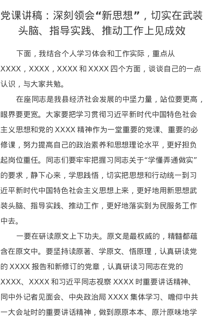 党课讲稿:深刻领会“新思想”,切实在武装头脑、指导实践、推动工作上见成效