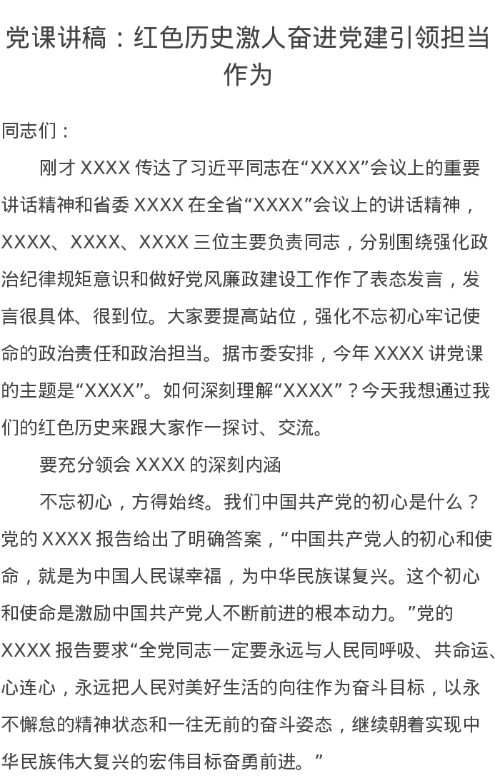 党课讲稿:红色历史激人奋进党建引领担当作为