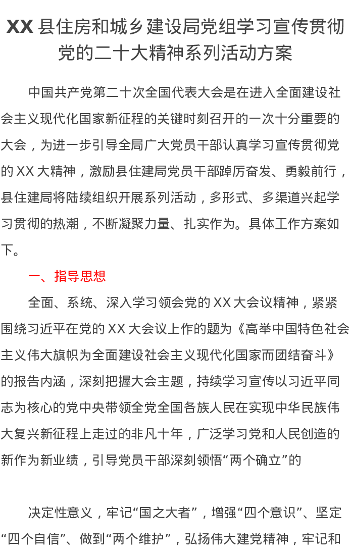 XX县住房和城乡建设局党组学习宣传贯彻党的二十大精神系列活动方案