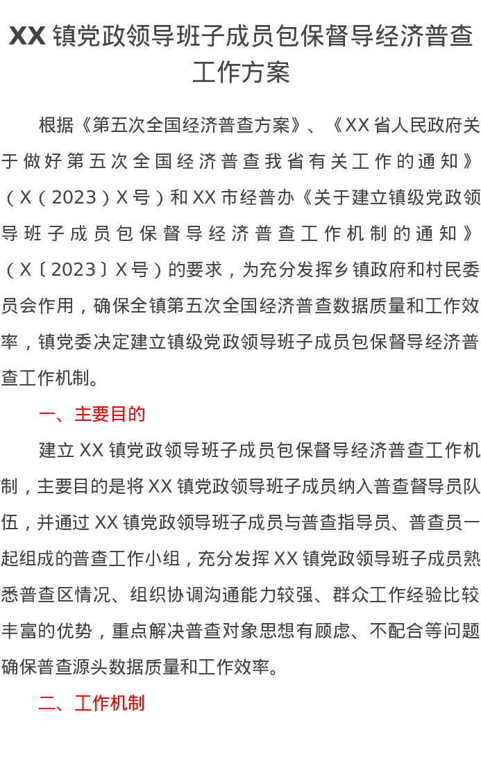 XX镇党政领导班子成员包保督导经济普查工作方案