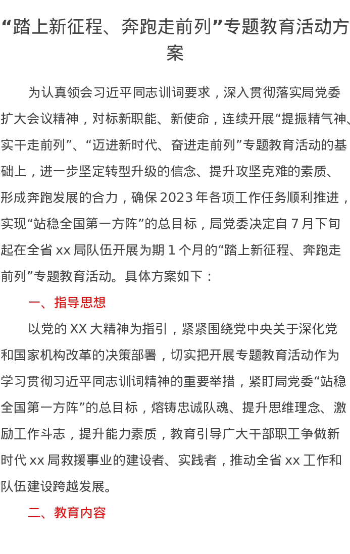 “踏上新征程、奔跑走前列”专题教育活动方案