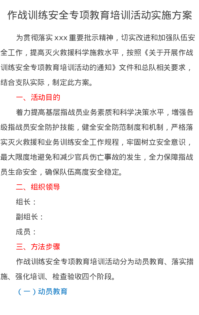 作战训练安全专项教育培训活动实施方案