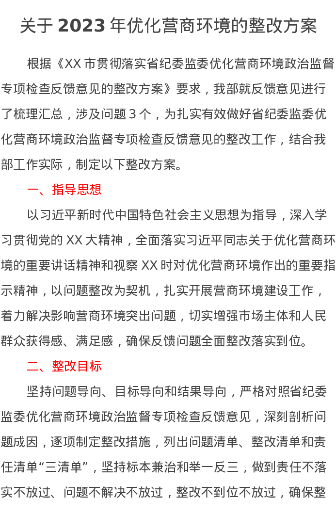 关于2023年优化营商环境的整改方案