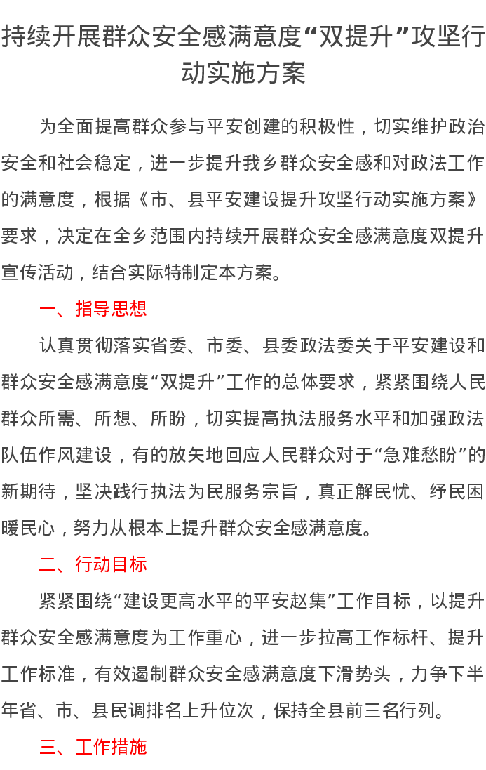持续开展群众安全感满意度“双提升”攻坚行动实施方案