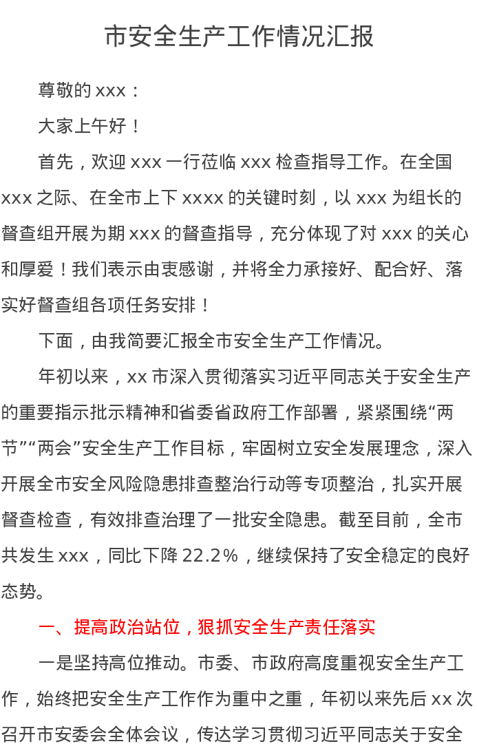 市安全生产工作情况汇报