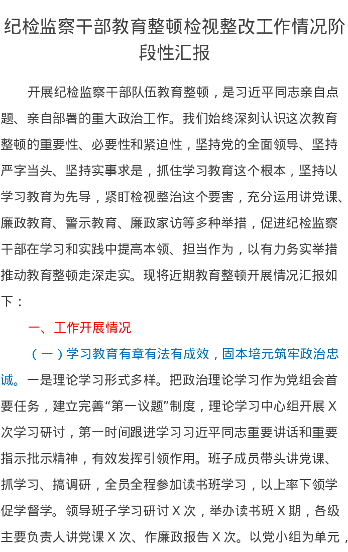 纪检监察干部教育整顿检视整改工作情况阶段性汇报