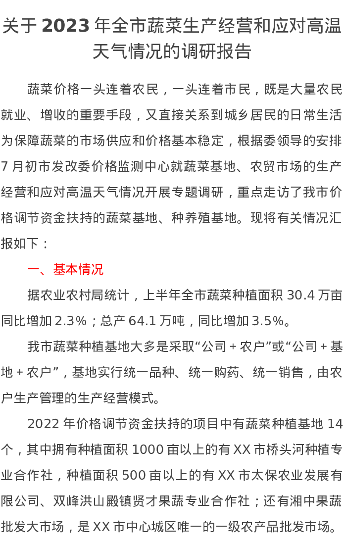 关于2023年全市蔬菜生产经营和应对高温天气情况的调研报告