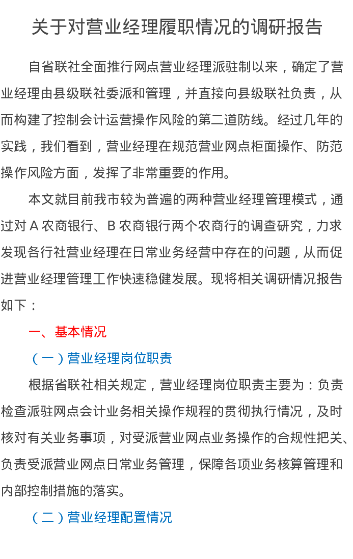 关于对营业经理履职情况的调研报告